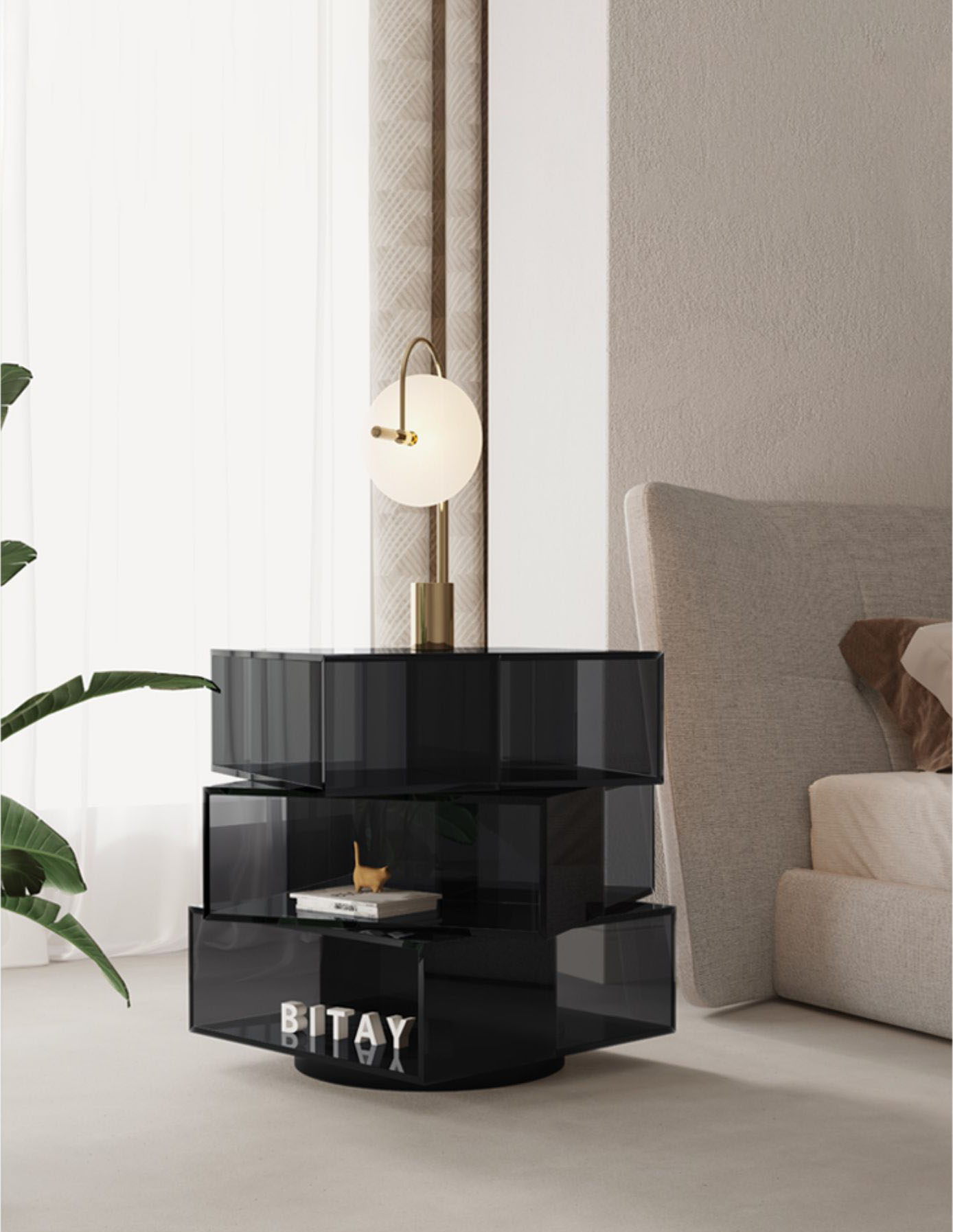 Acrylic bedroom bedside table modern simple rotatable bedside storage