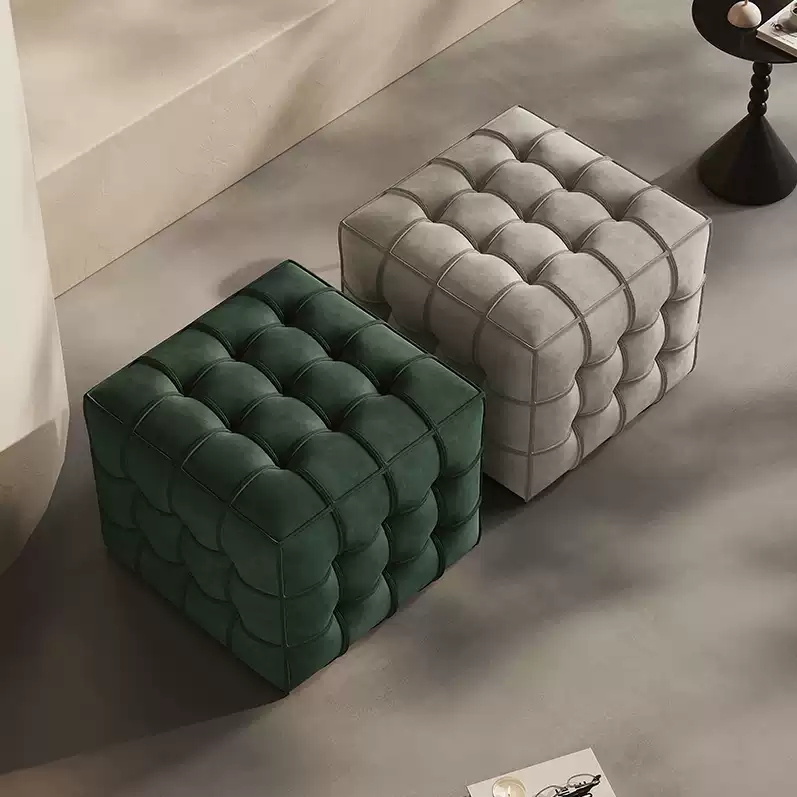Italian simple full frosted leather magic cube shoe changing stool bedroom dressing stool