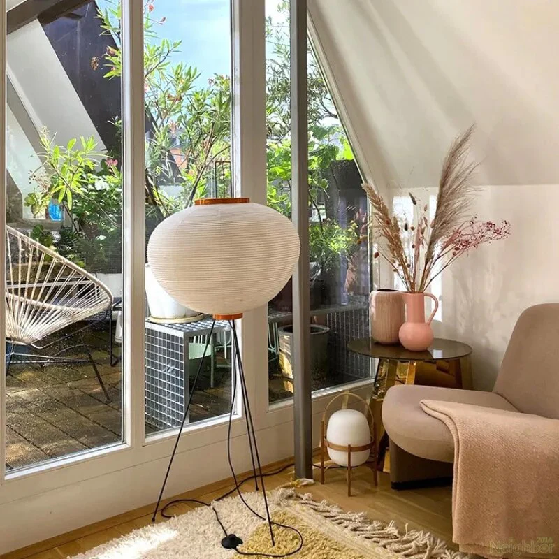 Japanese Wabi-Sabi Style Rice Paper Round Floor Lantern Lamp