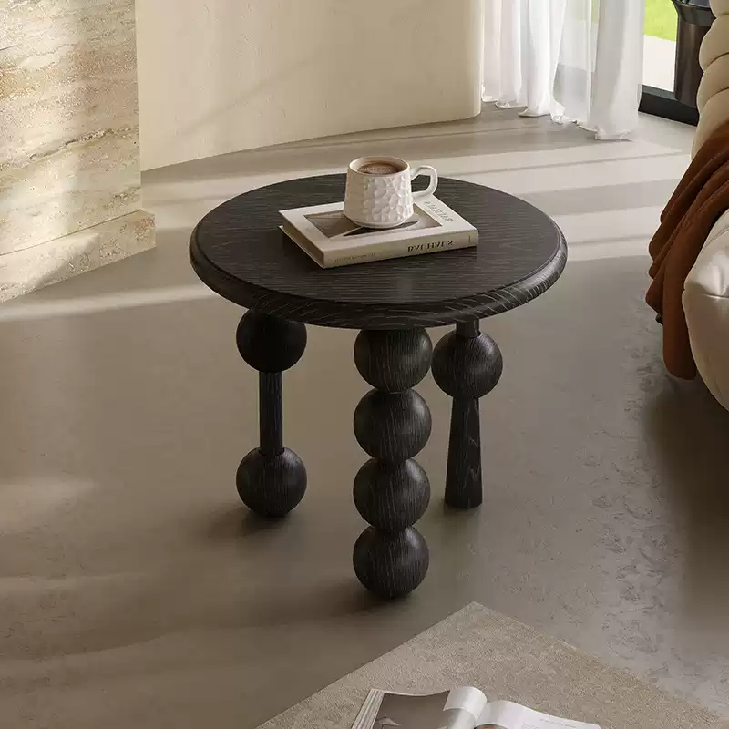 Italian light luxury ash wood side table vintage quiet style home small apartment